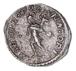 CARACALLA, (A.D. 198-217), silver denarius, issued 213, Rome Mint, (3.47 g), obv. laureate head right, around ANTONINVS PIVS AVG BRIT, rev. Mars advancing to left, holding spear and trophy, around MARTI PROPVGNATORI, (S.6819, RIC 223, RSC 150) (illustrated); another, issued 216, Rome Mint, (3.00 g), obv. laureate head to right of Caracalla, around ANTONINVS PIVS AVG GERM, rev. Serapis standing facing, head left, holding long sceptre and raising hand, around P M TR P XVIIII COS IIII P P, (cf.S.6829, RIC 280c, RSC 348); another, issued 203, Rome Mint, (3.18 g), obv. laureate bust draped to right of Caracalla, around ANTONINVS PIVS AVG, rev. Virtus or Roma standing to left, holding Victory and spear, around VIRTVS AVGG, (S.6903, BMC 211, RIC 149, RSC 665a); another, issued 210-13, (3.15 g), rev. MARTI PACATORI around, Mars standing front, head left, holding olive-branch, reversed spear and shield, (S.6818, RIC 222, RSC 149). Toning, nearly very fine - nearly extremely fine. (4)