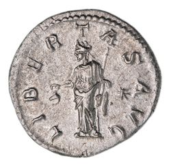 ELAGABALUS, (A.D. 218-222), silver denarius, Rome Mint, issued A.D. 220-221, (2.71 g), obv. laureate bust of Elagabalus draped to right, around IMP ANTONINVS PIVS AVG, rev. around LIBERTAS AVG, Libertas standing to half left holding pileus and sceptre, star to right, (S.7523, BMC 221, RIC 107, RSC 92) (illustrated); another, issued 219, (3.05 g), rev. around FIDES EXERCITVS, Fides seated to left, holding eagle and standard, another standard before her, (S.7487, BMC 106, RIC 67, RSC 28); another, (3.07 g), rev. around ABVNDANTIA AVG, Abundantia standing to left emptying cornucopiae held with both hands, star to left, (S.7501, RIC 56, RSC 1a); another, (3.22 g), rev. around INVICTVS SACERDOS AVG, Elagabalus in priestly robes standing left, sacrificing over altar, behind which is sacred bull and holding branch, star in left field, (S.7518, RIC 88, RSC 62). Toning, very fine - good very fine or better. (4)