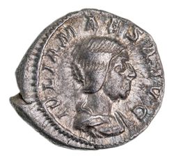 JULIA MAESA, grandmother of Elagabalus, (218-222 A.D.), silver denarius, Rome Mint, (3.45 g), obv, draped ...