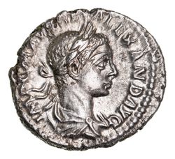 SEVERUS ALEXANDER, (A.D.222-235), silver denarius, issued 222, Rome mint, (2.75 g), obv. laureate bust to ...