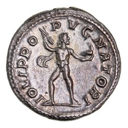 SEVERUS ALEXANDER, (A.D. 222-235), silver denarius, issued 231-235 A.D., Rome mint, (2.67 g), obv. laureate bust to right of Severus Alexander, draped seen from the front, IMP ALEXAN DER PIVS AVG around, rev. IOVI PRO PVGNATORI around, Jupiter standing facing, nude but for cloak, in fighting attitude, inclined to left but head to right, holding thunderbolt, (cf.S.7870, RIC 239, BMC 825, RSC 84). Lightly toned, good very fine otr better.