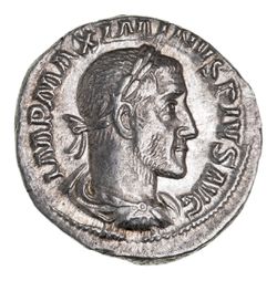 MAXIMINUS I, (A.D. 235-238), silver denarius, Rome Mint, (3.17 g), obv. laureate bust draped and ...