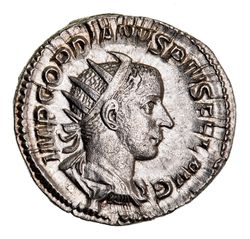 GORDIAN III, (A.D. 238-44), silver antoninianus (4.30g), Rome mint, issued 243-4 AD, obv. radiate, draped ...