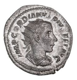 GORDIAN III, (A.D. 238-44), silver antoninianus (5.56g), Rome mint, issued 241-3 AD, obv. radiate and ...