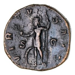 GORDIAN III, (A.D. 238-244), AE sestertius, Rome Mint, issued, A.D.240, (23.16 g), obv. laureate draped and cuirassed bust of Gordian III to right, around IMP GORDIANVS PIVS FEL AVG, rev. around VIRTVS AVG, SC across field, Virtus, helmeted, in military dress, standing facing with head to left, holding branch and spear, shield resting against right foot, (cf.S.8747, RIC 293a, C.390); another, (18.42 g), rev. Felicitas standing facing, head to left, holding caduceus and cornucopiae, around FELICIT TEMPOR, S C across, (S.8705, RIC 328a, C.73). Attractively toned, nearly very fine - very fine. (2)