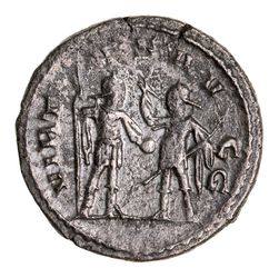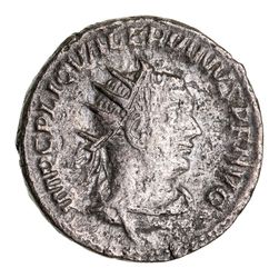 ROMAN IMPERIAL, silver antoninianii (5), Valerian, (A.D. 243-60), uncertain Syrian mint, issued 256-8 AD (3.38g), obv. radiate and cuirassed bust right, IMP C P LIC VALERIANVS P F AVG, rev. Valerian and Gallienus facing each other, Valerian holding sceptre and globe, Gallienus holding Victory and spear, VIRTVS AVG (S.9995; RIC Va 293; RSC 276); Gallienus, (253-68 AD), uncertain Syrian mint, issued 258-60 AD, (5.39g); radiate and cuirassed bust right, IMP C P LIC GALLIENVS P F AVG, rev. Gallienus in military attire right, resting on spear and recievig globe from Jupiter to left, wreath above, IOVI CONSERVATORI around (S.10242; RIC Va 440; RSC 378); Claudius II Gothicus, (268-70 AD), Cyzicus mint, issued 269 AD, (4.02g), obv. radiate, cuirassed, and radiate bust right, two dots below bust, IMP [CLA]VDIVS P F AVG, rev. two captives seated at foot of trophy, VICTORIAE GOTHIC, SPQR in exergue (S.11381, RIC V 252); Aurelian (270-5 AD), Rome mint, 4th officina, issued 274-5 AD, obv. radiate and advancing right, treading down enemy, holding laurel branch and bow, ORIENS AVG, [D] to left, XXI and R in exergue (S.11569, RIC V 64); Probus, (276-82 AD), Lugdunum mint, 4th officina, 4th emission, issued 277 AD, pbv. radiate and cuirassed bust right, IMP C PROBVS P F AVG, rev. Abundantia standing right, pouring grain from cornucopiae, ABVNDANTIA AVG, IIII in exergue (S.11949, RIC V 17). Very fine - nearly extremely fine, most have traces of silvering. (5)
