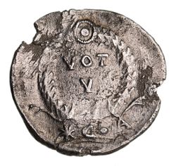 VALENS, (A.D. 364-378), silver siliqua (1.97g), Constantinople mint, 4th officina, struck 364-7, pbv. diademed, draped, and cuirassed bust right, VALENS PF AVG aruond, rev. VOT V in two lines within laurel wreath, C A, dot between, star to left in exergue (S.19681; RIC IX 13j var; RSC 88ti). Edge chips at 3 and 8 o'clock, rough surfaces, very fine.