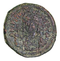 JUSTIN II, with Sophia, (A.D. 565-578), bronze nummus, Nicomedia mint, obv. Justin and Sophia enthroned ...