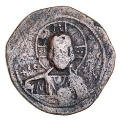 BASIL II AND CONSTANTINE VIII, period of 976 - 1028, copper follis', anonymous class A2, (16.36g) obv. nimbate facing bust of Christ, raising hand in benediction and holding Gospels, two pellets in nimbus IC XC across field, rev. four-line legend (Jesus Christ King of Kings) in latin, dotted circle and pelleted cross above and below legend (S.1813 ;DOC III-2 A2); anonymous class A3, (10.47g), similar to previous (S.1818). Fine. (2)