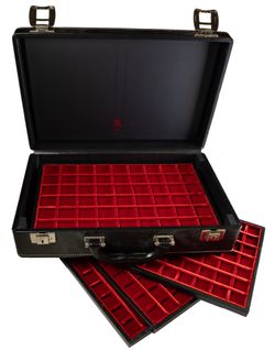 COIN CASE, Abafil, Milano five tray coin case, each tray arranged in squares, tray 1, ...