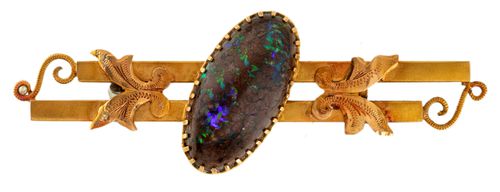 OPAL BROOCH, c1910, in gold (15ct; 6.55g; 55x19mm), maker unknown, features a decorative thin single ...