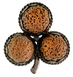 QUANDONG SEED BROOCH, in sterling silver frame (tot wt 9.69g; 43x46mm), by A.C. Due, features ...