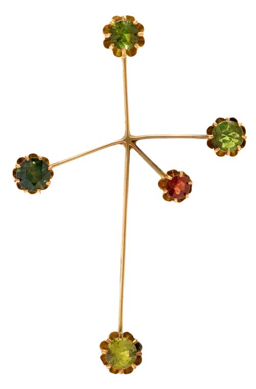 MULTI GEMSTONE BROOCH, in gold (15ct; 4.50g; 34x53mm), maker unknown, features bar with three prongs ...