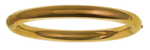 BANGLE/BRACELET, in gold (15ct; 13.89g; 70mm), by Basse (F.Basse & Co), plain design with clip closing. Very fine.