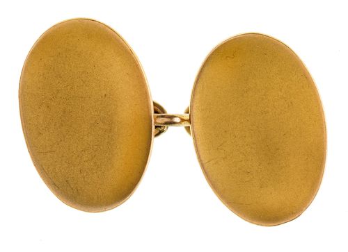 SINGLE CUFFLINK, in gold (9ct; 3.41g; 13x19mm), by Britannic, features a depressed oval on both fittings. Very fine.