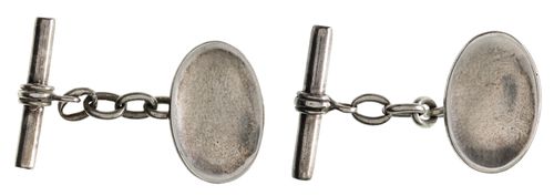 CUFFLINKS, in sterling silver (10.39g; 13x18mm), by Stevenson (Bros), features plain oval discs at both ...