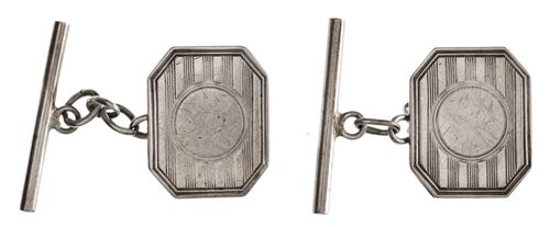 CUFFLINKS, in silver (5.86g; 14x17.5mm), maker unknown, features a multi lined surface with a plain ...