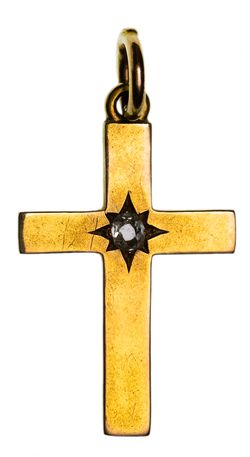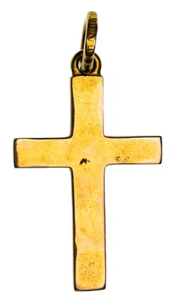 CROSS PENDANT, in gold (15ct; 2.38g; 25x37mm), attributed to Willis & Sons, features a plain ...
