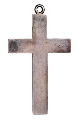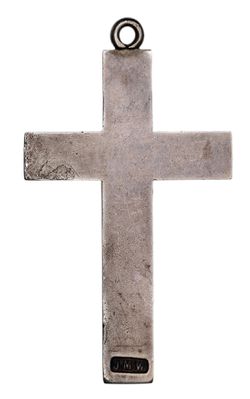 CROSS PENDANT, in silver (4.41g; 26x42mm), by J.M.W (J.M. Wendt), features a plain cross with ring top suspension, with unofficial box. Very fine.