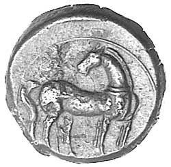ZEUGITANIA, Carthage, (c.215-210 B.C.), AE 22, probably Carthage mint or an uncertain Sicilian mint, (9.192 grams), obv. head of Tanit left, wreathed with corn, rev. horse standing right looking back, palm tree behind, (S.-, SNG Cop. 318 [Carthage mint dated 221-210 B.C.], cf.Visona 46-47). Brown tone, good very fine and rare.