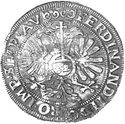 GERMANY, Lubeck Free City, under Mayor Lorenz Moller, silver taler, 1627 (28.81gms) (D.5449B, KM.60 p.563). Slightly waterworn, with only minor surface porosity, some staining, otherwise very fine and rare.