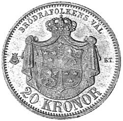 SWEDEN, twenty kronor, 1875. Uncirculated.