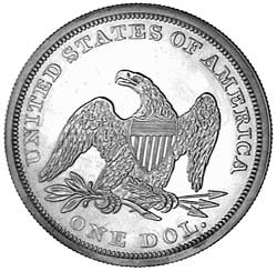 U.S.A., proof seated Liberty dollar, 1859. Brilliant, nearly FDC and very rare.