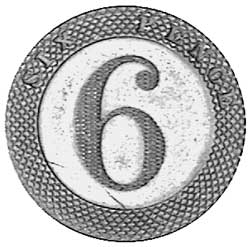 PORT PHILLIP, Kangaroo Office pattern sixpence in pewter (white metal) by W.J. Taylor, straight grained ...