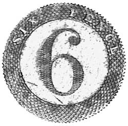 PORT PHILLIP, Kangaroo Office pattern sixpence in pewter (white metal) by W.J. Taylor, straight grained ...