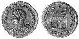 CONSTANTINE I, (A.D. 307-337), AE folles, issued 327-8, Trier mint, obv. laureate head to right of Constantine, around CONSTAN TINVS AVG, rev. camp gate two ...