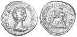 JULIA DOMNA, wife of Septimius Severus, (A.D. 193-217), silver denarius, Rome mint, issued 215, (3.070 grams), obv. draped bust to right of Julia Domna, around ...