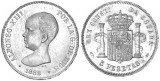 SPAIN, Alfonso XIII, five pesetas 1888 MPM (KM.689, D.342). Lightly toned, uncirculated and scarce.
