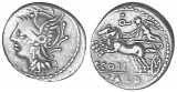 MARCUS CALIDIUS, Q. Metellus and Cn.Fulvius, (117-116 B.C.), silver denarius, Rome mint, (3.778 grams), obv. Roma helmeted head right, ROMA behind, * below chin, rev. ...