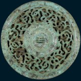 CHINA, uncertain period probably Chou dynasty - Tang dynasty, circular mirror money series, uniface with detailed ornamental circular projection with a scroll lattice work on ...