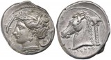 SICULO-PUNIC, mint of the camp, (c.320-310 B.C.), silver tetradrachm, (17.05 g), obv. wreathed head of Persephone to left, wearing triple pendant earring and necklace, four ...