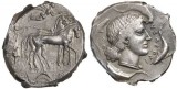 SICILY, Himera, (c.409-407 B.C.), silver tetradrachm, obverse die signed by the artist Mai-, (17.50 g), obv. the nymph Himera, holding reins in both hands, driving ...