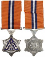 AFRICAN MEDALS, South Africa Police Star for Merit. 1980 10 06 on back of suspender bar; South Africa Police Service Medal. 16580N Konst M E ...