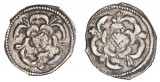 CHARLES I, (1625-1649), pattern, silver halfgroat or twopence, struck 1640, (1.36 g), obv. rose with large crown above and B below between crowned C R, ...