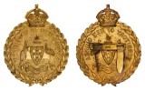 TERRITORY OF NEW GUINEA, District Officer's cap badge, c1930s, in gilt brass (54x67mm) (Mira p173 illustrated), by Amor, Sydney, with two fold-over suspenders, one missing. ...