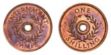 COMMONWEALTH OF AUSTRALIA, World War II Internment Camps, one shilling. Red and brown, uncirculated.