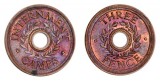 COMMONWEALTH OF AUSTRALIA, World War II Internment Camps, three pence token; Isle of Man, plastic 1/2d internment camp token. Red and brown nearly uncirculated; very ...