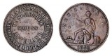 GRUNDY, J.R., Ballarat penny, 1861 (A.157). In home made holders, very fine. (2)