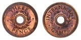 COMMONWEALTH OF AUSTRALIA, World War II Internment Camps threepence, obverse camps not re-entered. Good extremely fine.