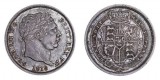 GEORGE IV, silver sixpence, laureate head left, 1821 (S.3813). Toned extremely fine.