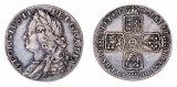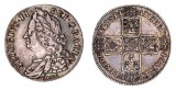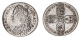 GEORGE I, silver shilling, first bust, 1715 rosa at planis (S.3645). A little rubbed otherwise very fine.