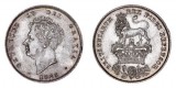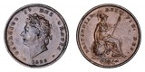 GEORGE IV, bare head silver sixpence 1828 (S.3815), copper penny, 1826 (S.3825). Very fine; good very fine. (2)
