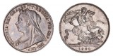 QUEEN VICTORIA, old head, silver crowns, 1900LXIII, 1900LXIV (S.3937). Extremely fine; extremely fine/good extremely fine. (2)