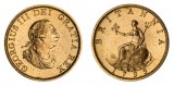 GEORGE III, gilt proof pattern halfpenny, 1799, K. in truncation (S.3778; Peck 1233) Soho mint. Nearly FDC.