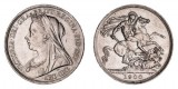 QUEEN VICTORIA, old head, silver crown, 1900 LXIV (S.3937). Lightly toned, nearly extremely fine.