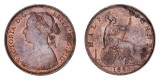 QUEEN VICTORIA, young head, silver shilling 1881 (S.3907); bronze halfpenny, 1885 (S.3956), farthings 1875H (S.3959) (2), 1891 (S.3958). First good very fine, others good extremely ...
